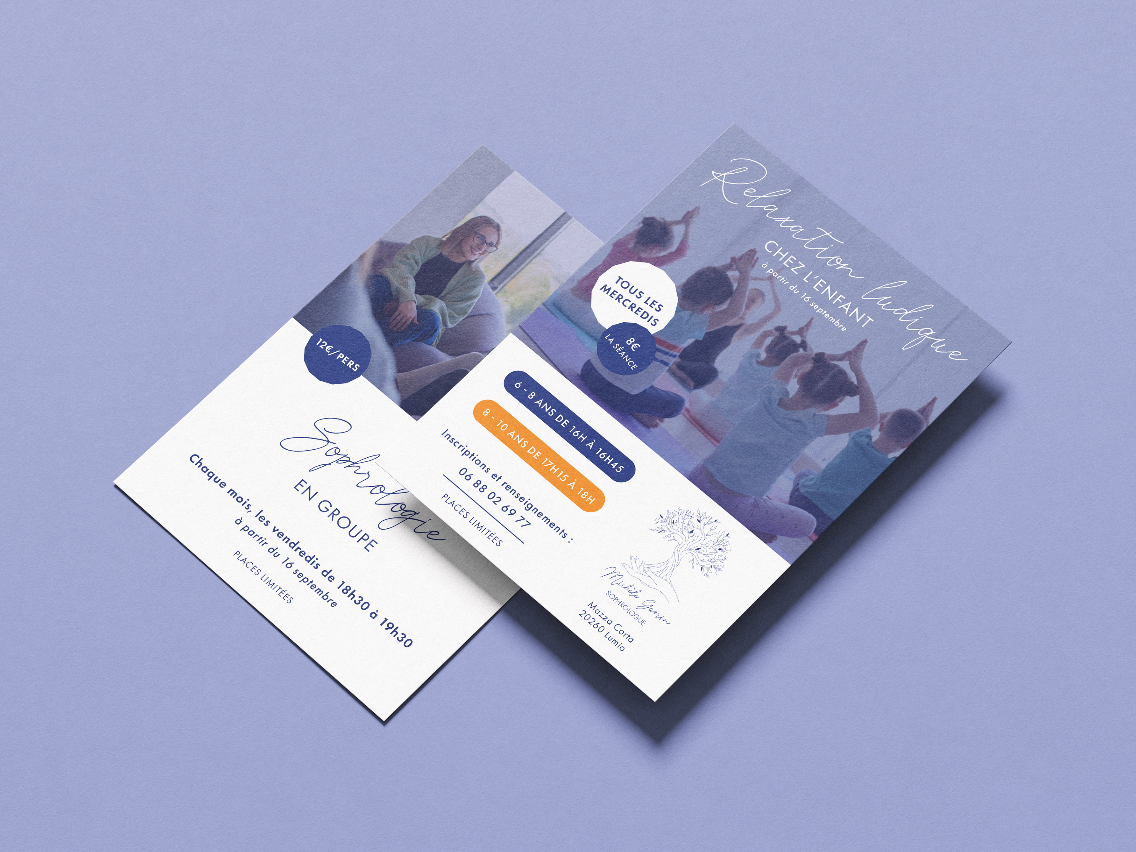 J'ai eu l'opportunité de collaborer avec une sophrologue pour créer son identité visuelle. Ce projet a été une occasion unique de fusionner ma passion pour le design graphique avec le désir d'accompagner une professionnelle dans le lancement de son activité. En travaillant étroitement avec elle, j'ai cherché à comprendre sa vision, ses valeurs et son approche de la sophrologie.