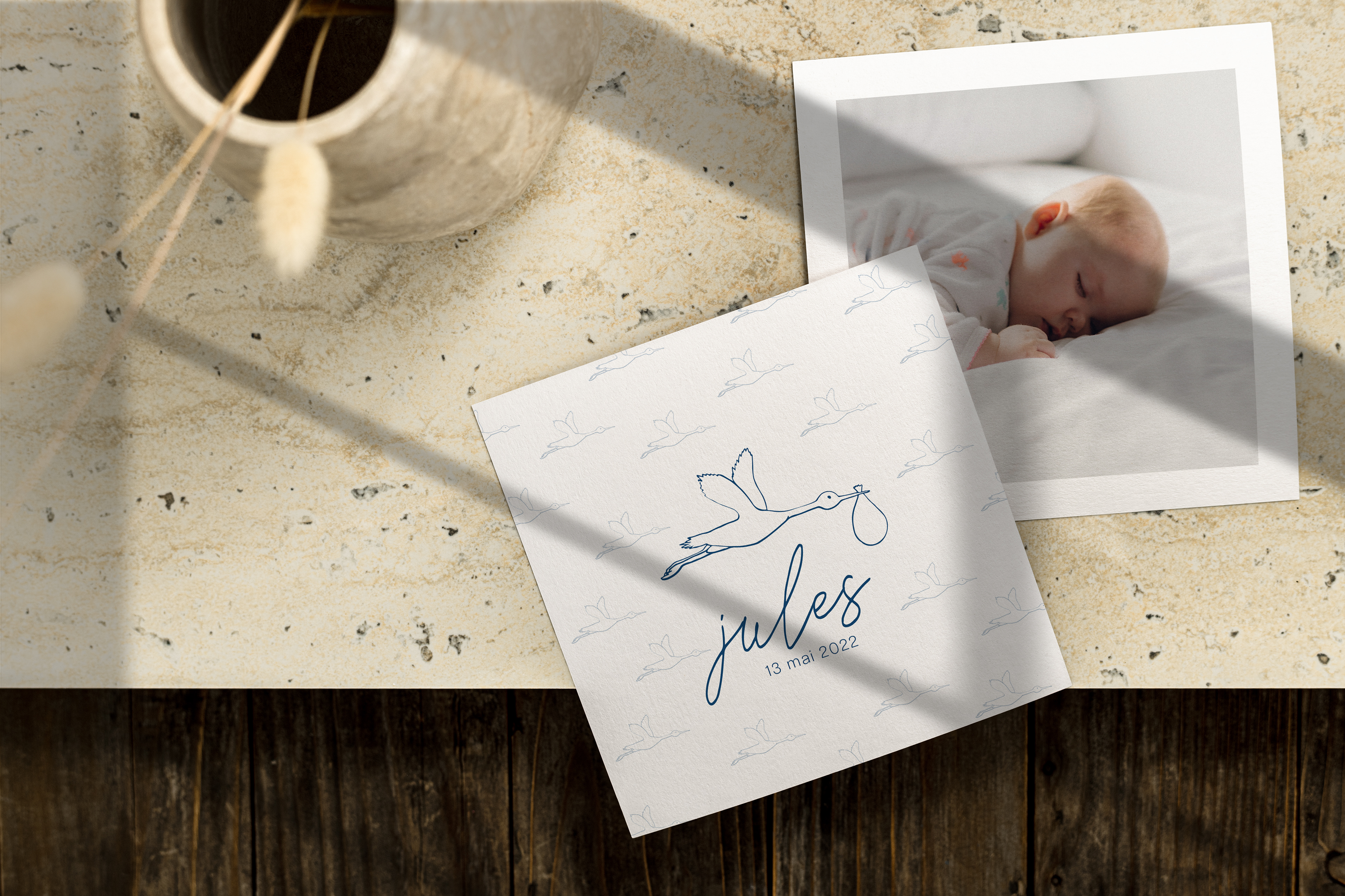 Création d'un faire-part de naissance avec illustration.