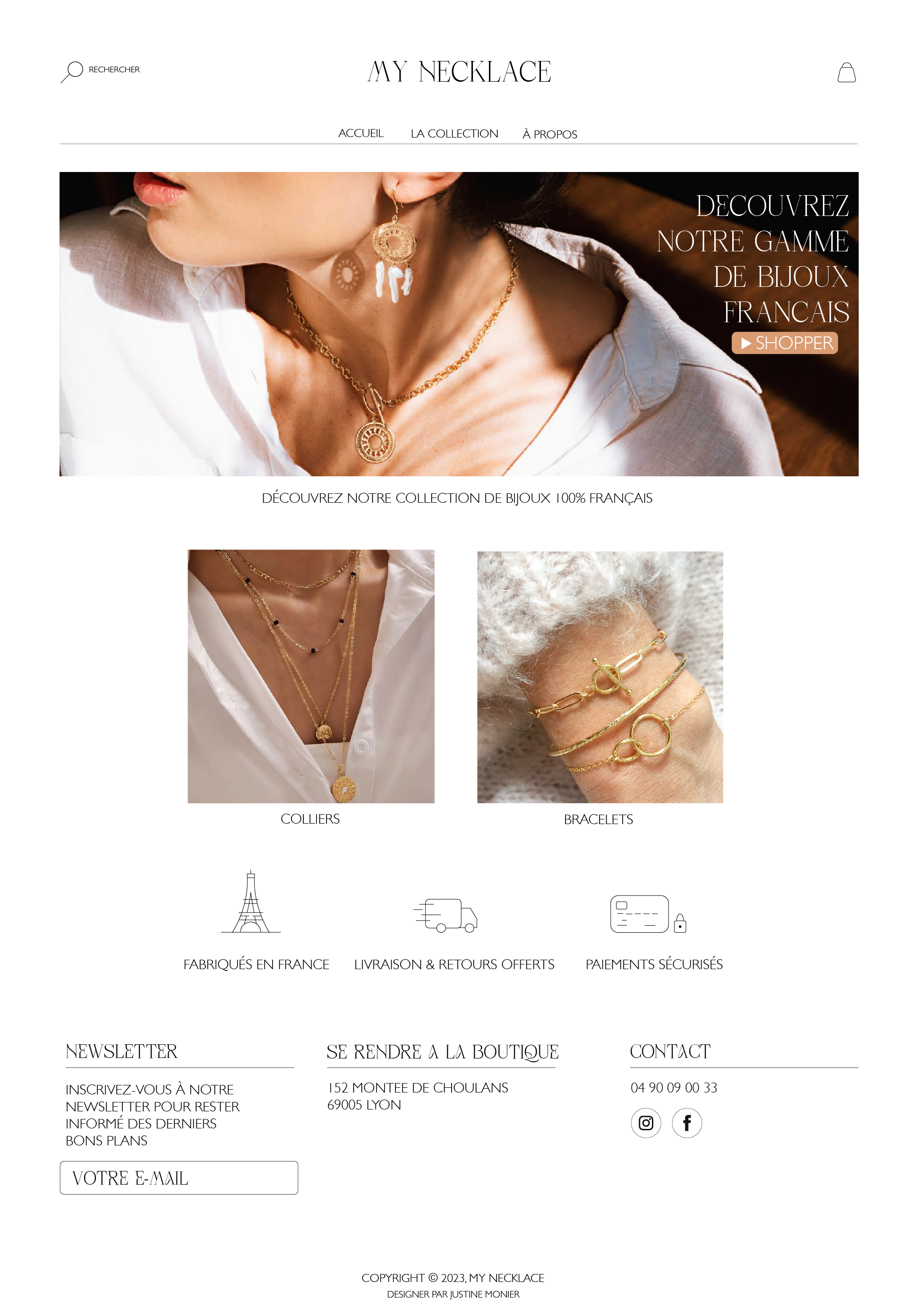 Plongez dans l'univers des bijoux My Necklace avec le site web que j'ai créé pour la boutique en ligne. En collaboration avec le client, j'ai conçu une plateforme qui met en valeur la beauté et l'élégance des bijoux, tout en offrant une navigation fluide et sécurisée. Chaque détail, de la disposition des produits à la conception du panier d'achat, a été soigneusement pensé pour garantir une expérience utilisateur optimale.
